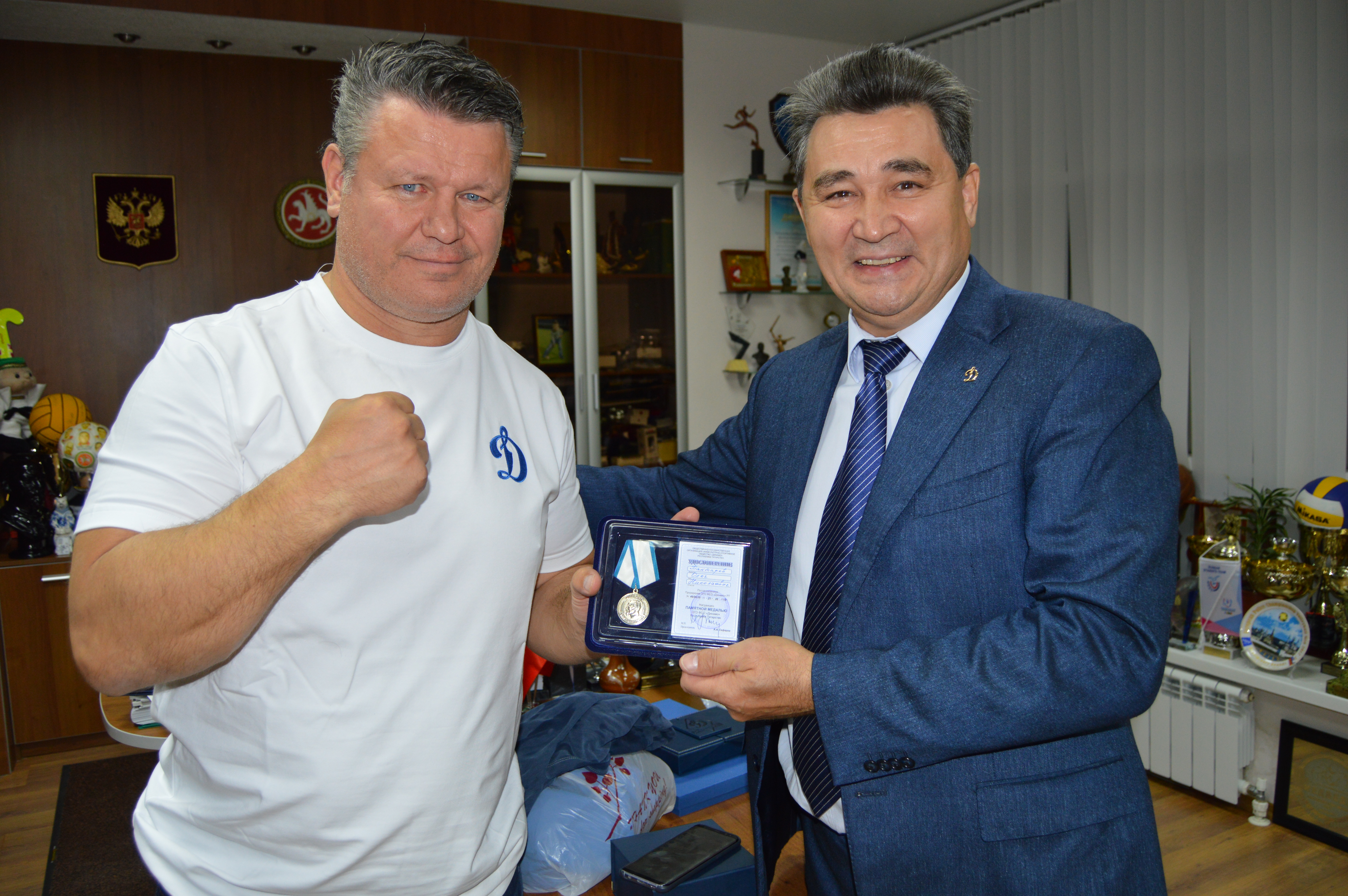 Перед началом мероприятия первый заместитель Председатель Общества «Динамо» Республики Татарстан Салават Гайсин ознакомил Олега Николаевича со спорткомплексом и кратко рассказал о татарстанском спортивном Обществе.