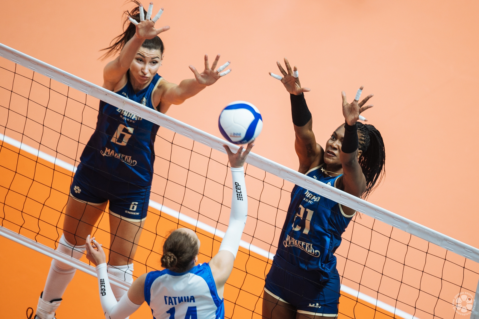 Ирина Королева и Светлана Гатина дважды останавливают атаку Виктории Руссу, однако челябинская диагональная не сдается и отвоевывает очко в затяжном розыгрыше и выводит «Динамо-Метар» вперед – 4:7. «Динамо-Ак Барс» организует погоню во главе со Светланой Гатиной, которая прервала неудачную серию розыгрышей точной атакой, классной игрой в защите и эйсом – 7:7. К ней подключается Ангелина Сперскайте, реализовывая каждую доверенную ей атаку, что выводит казанскую команду вперед – 11:9 и вынуждает Алексея Дешина взять перерыв. Вместо Сперскайте на площадку выходит Брайелин Мартинес и сразу отличилась результативными атакой и блоком – 19:16. Елизавета Лукьянова берет на себя роль главного бомбардира и увеличивает преимущество казанской команды до плюс пяти – 22:17. Гатина промахнулась несколько раз подряд, что позволило девушкам из Челябинска сократить отрыв до минимума – 23:22, однако благодаря собственным ошибкам в концовке «Динамо-Метар» отдает хозяйкам площадки и второй сет – 25:22.