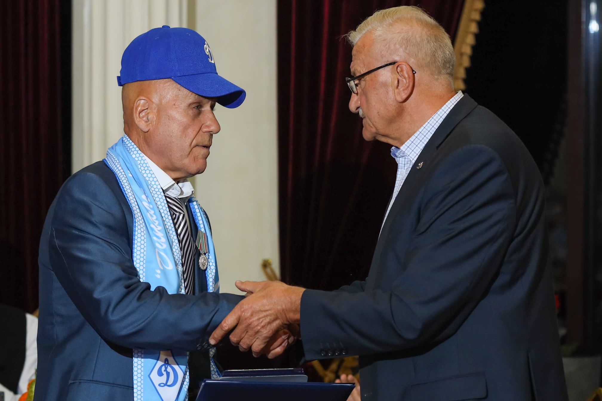 От имени председателя Всероссийского общества «Динамо» генерал-лейтенанта Анатолия Гулевского он зачитал адресную папку и вручил Почетную Золотую медаль «За особый вклад в развитие спорта и динамовского движения».
