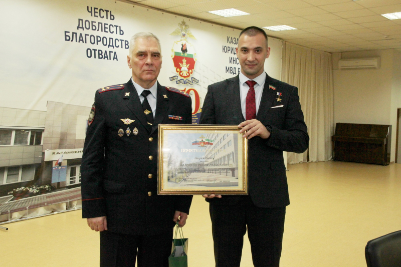 В завершение встречи Расим Рашидович был награжден почетной грамотой КЮИ МВД России за формирование у личного состава института государственно-правового мировоззрения, чувства патриотизма и личной ответственности за судьбу Отечества.