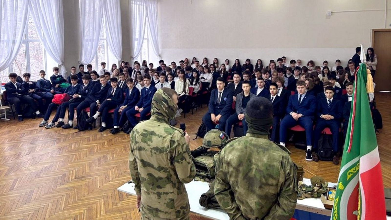 В Казани военнослужащие отряда специального назначения Росгвардии «Барс» провели урок мужества для учеников 10-11 классов лицея №83, приуроченный к грядущему Дню защитника Отечества.
