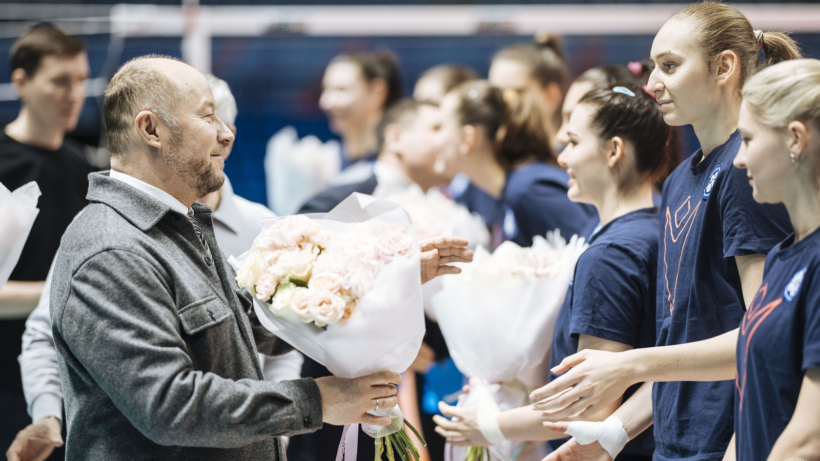 В знак внимания и признательности Асгат Сафаров вручил волейболисткам прекрасные букеты цветов и памятные подарки от партнеров клуба – компаний «Махеевъ» и «Мастерская Олеси Мустаевой».
