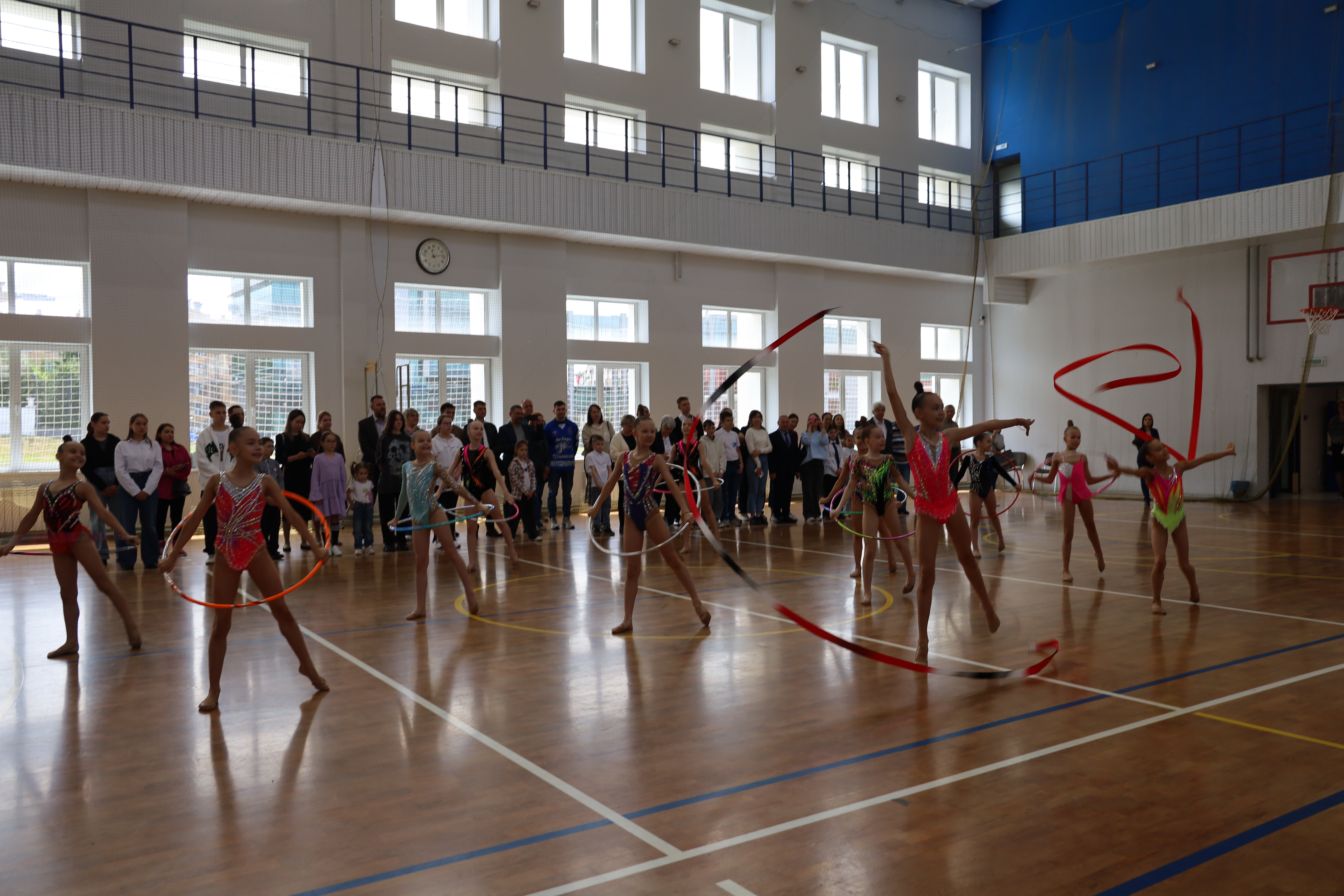 Участников мероприятия поздравили с композицией "Динамо- сила в движение!" воспитаницы Академии гимнастики и спорта.
