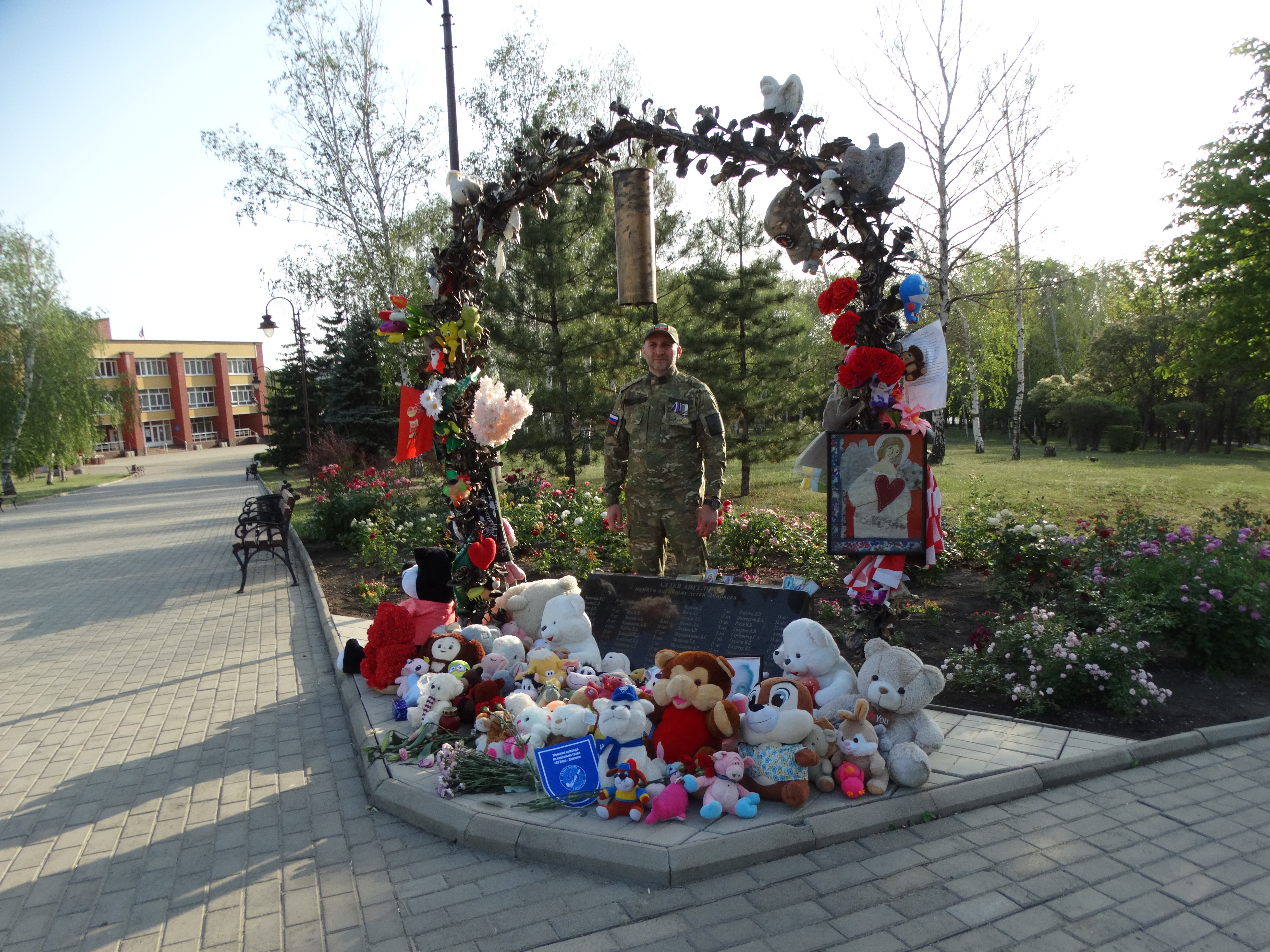 А также положили игрушку «Барсик-динамовец» с вымпелом клуба и цветы на Аллею ангелов в г. Донецк, в память о погибших детях Донбасса.