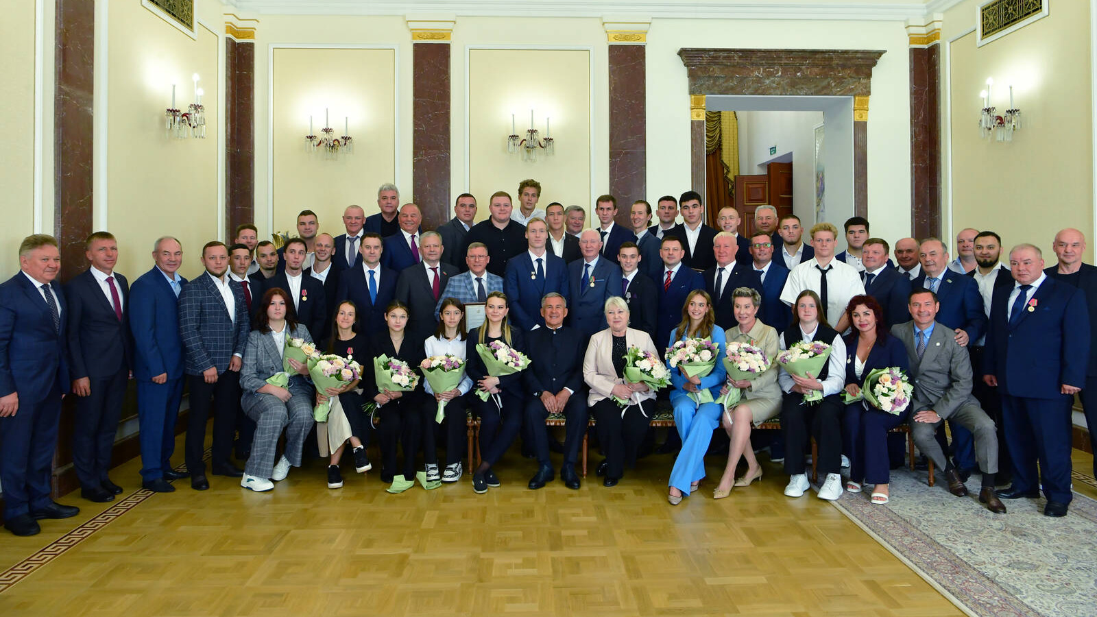 Государственные награды Республики Татарстан и Благодарности Раиса Республики Татарстан вручил сегодня Рустам Минниханов ведущим спортсменам региона и их тренерам.