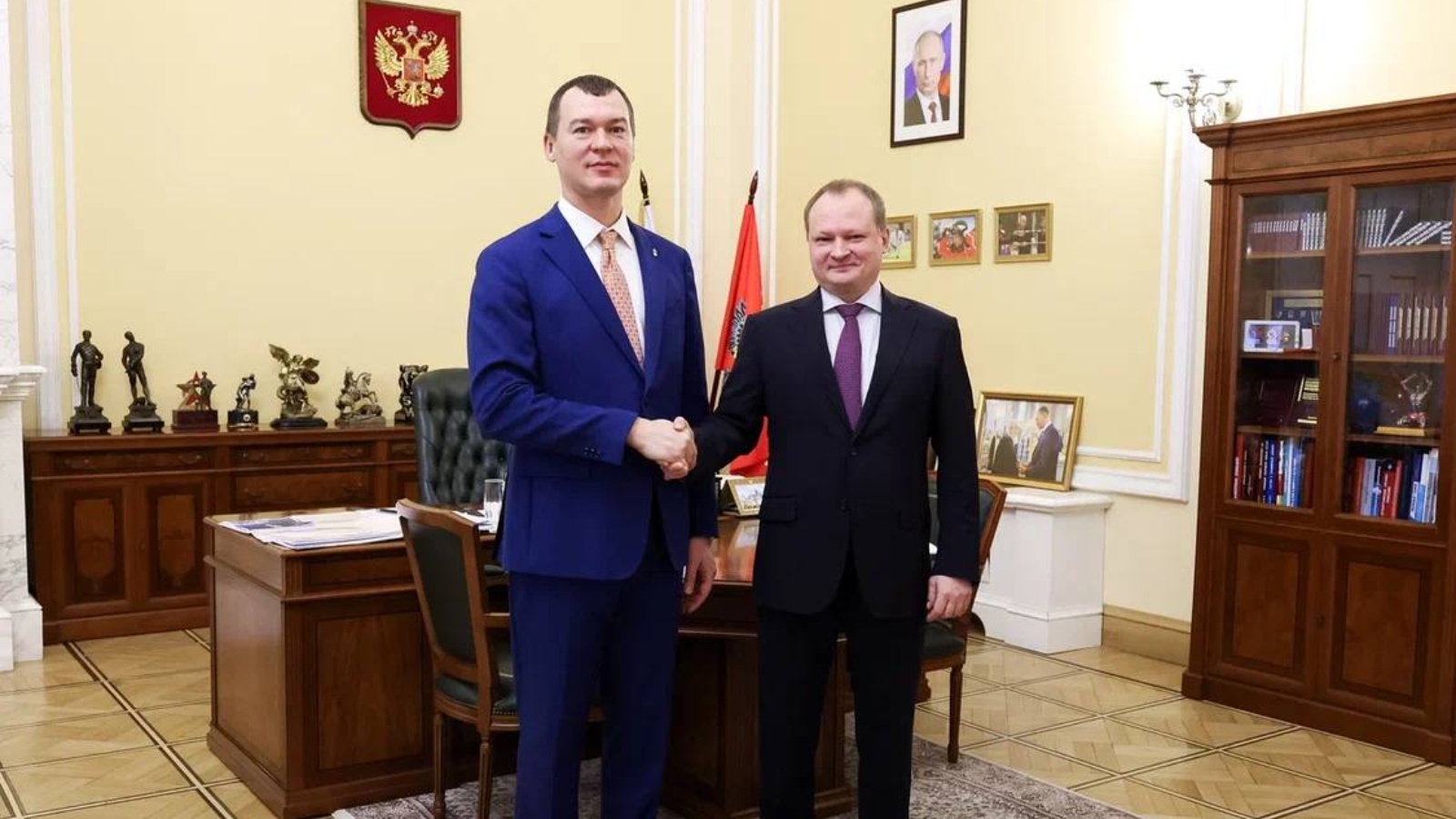 Министр спорта России Михаил Дегтярев и президент ФХТР Антон Мороз обсудили перспективы развития хоккея на траве. Рабочая встреча прошла 25 декабря 2025 года.