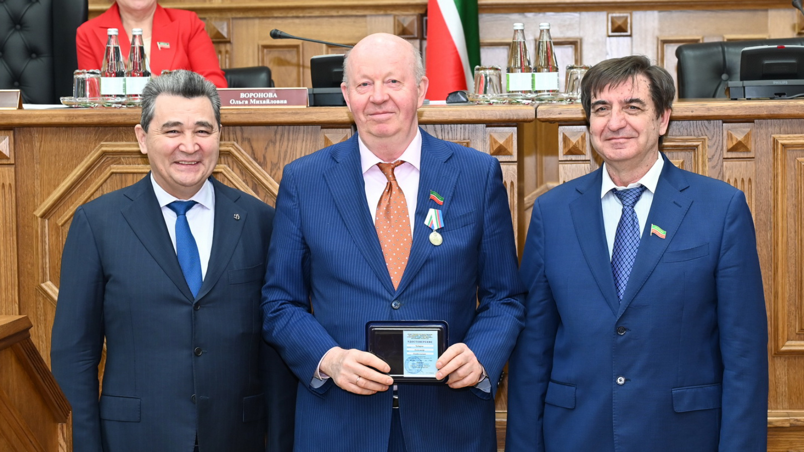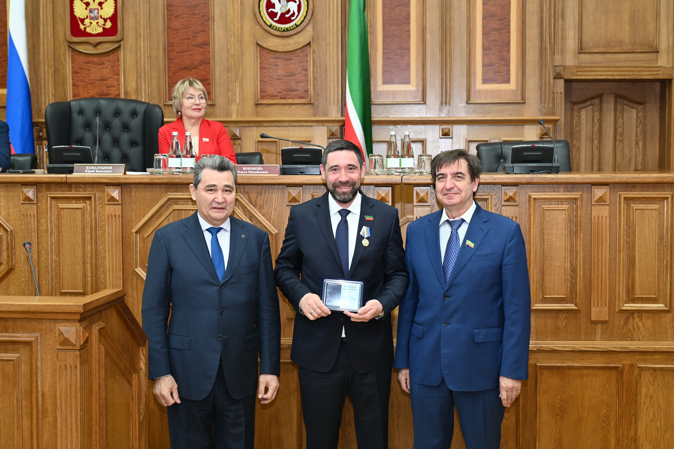 Началось заседание с награждения парламентариев Юбилейной медалью «100 лет Обществу «Динамо» Республики Татарстан». Награждение провели Юрий Камалтынов и Салават Гайсин.