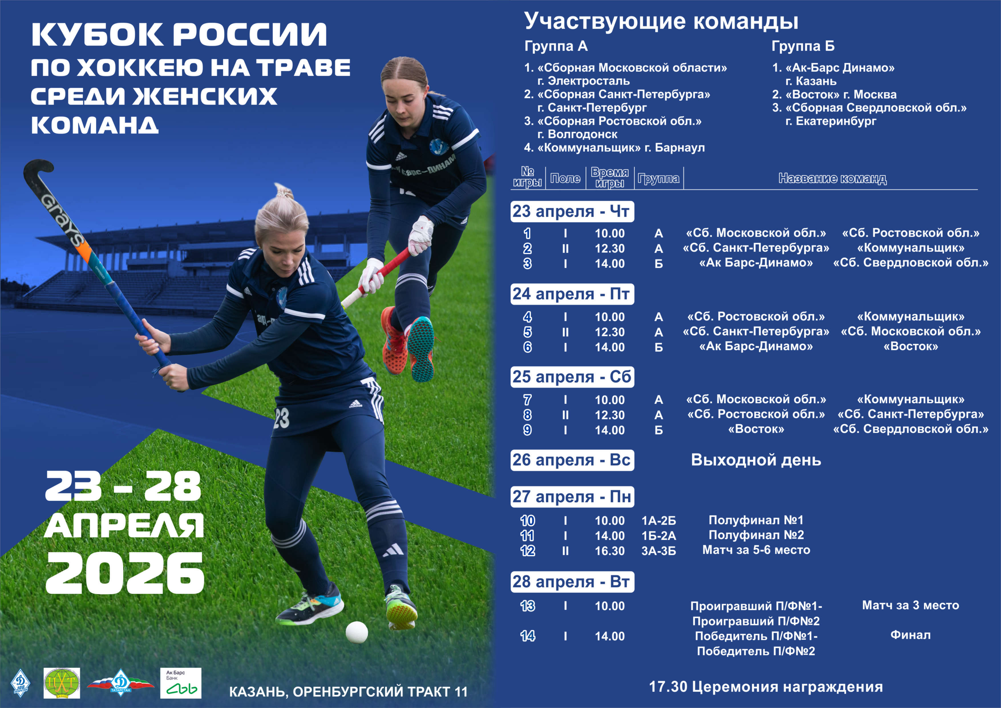 23 апреля в столице Татарстана, вслед за розыгрышем Суперкубка страны, берет старт Кубок России по хоккею на траве среди женских и мужских команд.